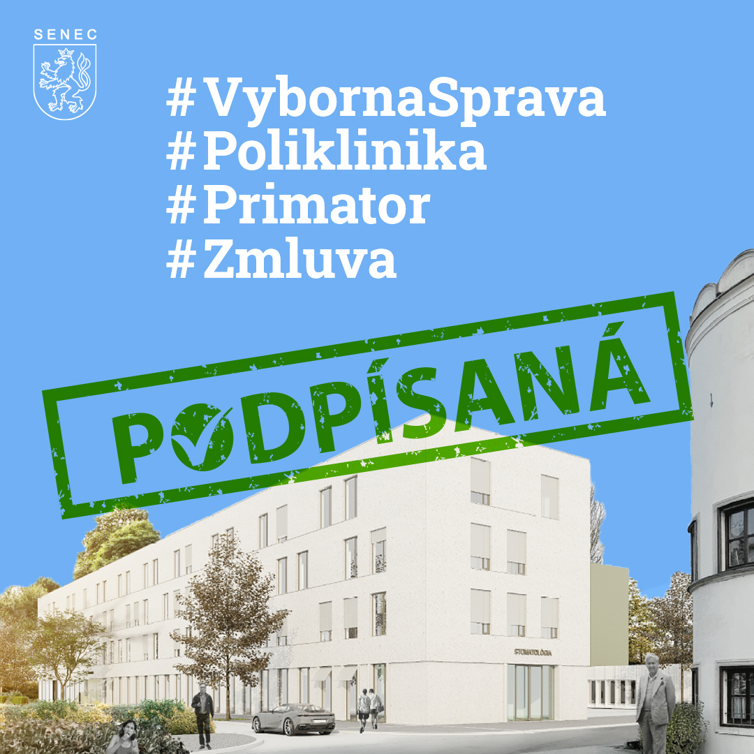 S veľkou radosťou vám oznamujem, že mesto Senec má podpísanú zmluvu s Ministerstvom zdravotníctva Slovenskej republiky na výstavbu novej polikliniky v našom meste!